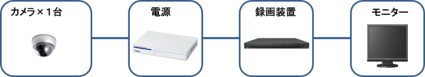 屋外用カメラ×2台、電源装置×1台、4chレコーダー×1台、21.5インチ液晶モニター×1台